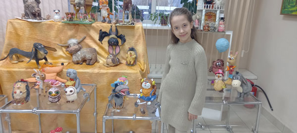 Увлечение Виктории папье-маше привело её на занятия школьного объединение по интересам «Юный художник», которым руководит Светлана Николаевна Борисейко. Там Вика научилась создавать из бумаги объемных персонажей и создала свою коллекцию героев мультфильмов «Смешарики», «Головоломка», «Попугай Кеша» и «Тайная жизнь домашних животных».
