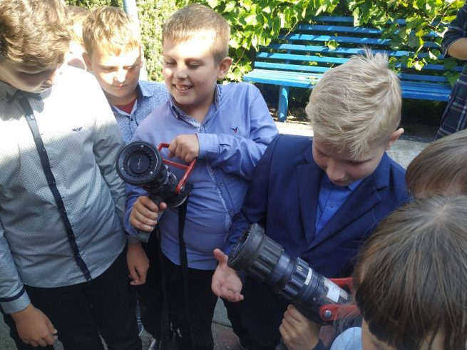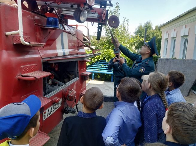 Пятиклассникам рассказали всё об имеющихся в распоряжении пожарной части пожарных машинах. С большим интересом они слушали огнеборцев. Оказывается, пожарный автомобиль таит в себе большой арсенал для тушения возгораний. Девчонки и мальчишки лично убедились, как сложна и опасна профессия спасателя.