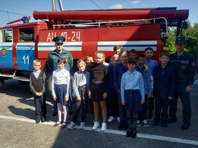 Учащиеся пятых классов посетили ПАСП-11, расположенный на территории посёлка. Зрелищное действие произошло возле гаража боевых машин. Ребятам показали предметы боевой одежды, пожарно-спасательное оборудование. Даже девчонкам было интересно примерить боевую одежду!
