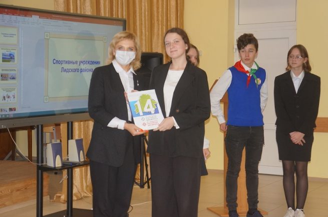 Светлана Леонидовна Белявская, руководитель информационного центра школы, отметила, что формирование здорового стиля поведения молодежи является одним из приоритетных направлением социальной политики развития нашего государства. Ежегодные спортивно-массовых мероприятий в нашей стране, в том числе и на Лидчине, служат тому ярким примером. Ученики 8-го класса «Б» провели презентацию «Спортивные учреждения Лидского района», акцентировав внимание на возможностях спортивной инфраструктуры нашего города для удовлетворения запросов молодёжи в занятиях спортом.