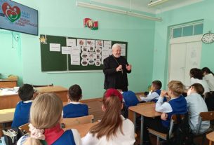 Са святаром айцом Мікалаем вучні ўзгадалі гісторыю ўзнікнення калядных святкаванняў. Было цікава даведацца адказы на пытанні, як зарадзіліся традыцыі Вялікага свята Ражства Хрыстова ў праваслаўных вернікаў. Айцец Мікалай растлумачаў сімвалы, якія бачаць вернікі на праваслаўных іконах.