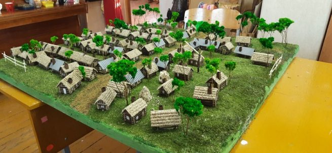 Макет деревни Ракитенка – наша конкурсная работа. Собрав необходимую информацию из всех возможных источников, педагоги дополнительного образования центра детского творчества г. Мстиславля и обучающиеся изготовили макет довоенной деревни размером 1,2х1,2, на котором отображены личные, хозяйственные, общественные здания, улицы, природный ландшафт и другие атрибуты населённого пункта.