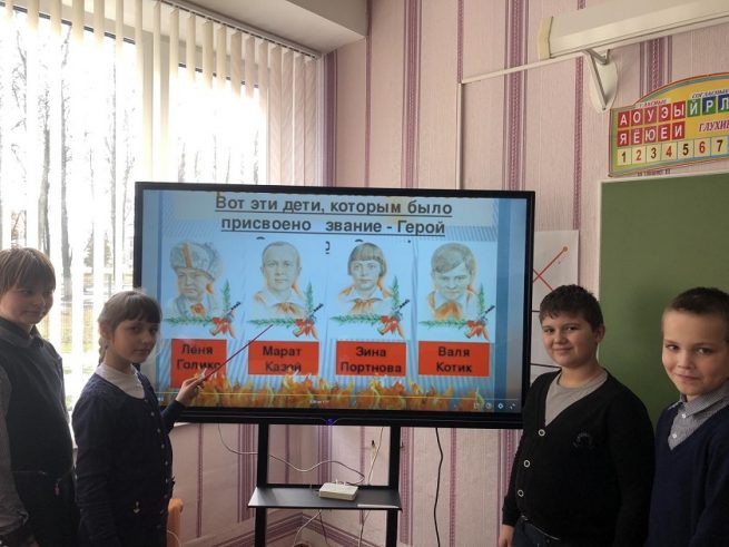 Учащиеся ещё раз вспомнили о мальчишках и девчонках, которые за подвиги, совершённые в годы Великой Отечественной войны, были удостоены самой высокой награды Родины – звания Героя Советского Союза. Ребята с интересом слушали рассказы одноклассников о своих ровесниках: Лёне Голикове, Зине Портновой, Марате Казее, Вале Котике и других пионерах-героях, чей подвиг навеки останется в памяти поколений.