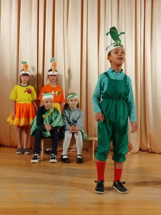 Учащиеся 3 «В» класса организовали «Овощную вечеринку». Главным героем стал царь Горох, который собрал в своём замке все овощи и фрукты. Гости царя Гороха рассказали о том, как они появились в нашей стране и в чем их польза. Были танцы, шутки, песни и загадки.