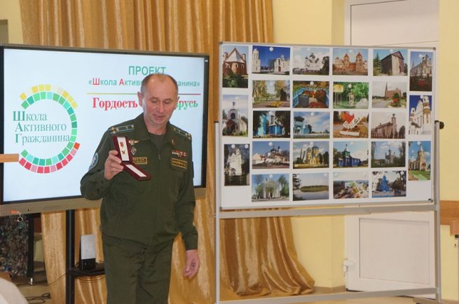 Почётными гостями ШАГа в этот день стали родители Героя Беларуси – майора Андрея Ничипорчика – Галина Михайловна и Владимир Леонидович Ничипорчики. Учащиеся, затаив дыхание, слушали рассказ Галины Михайловны о сыне, о том каким он был подростком, как небезразлично относился ко всему, что происходило вокруг него, насколько он любил свою семью и ответственно относился к работе. Владимир Леонидович, в свою очередь, дал советы молодому поколению: какие качества надо воспитывать в себе человеку, чтобы вырасти достойным гражданином своей страны, истинным патриотом. Уникальным случаем для всех ребят и педагогов стало то, что они увидели награду Героя Беларуси майора Андрея Ничипорчика, которую его семье вручили посмертно.
