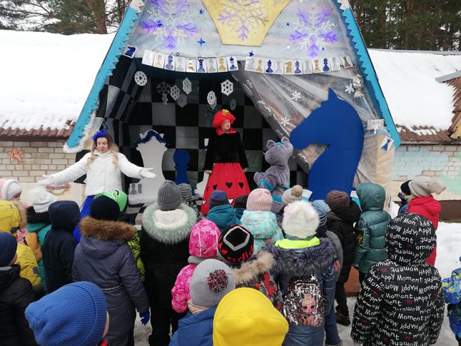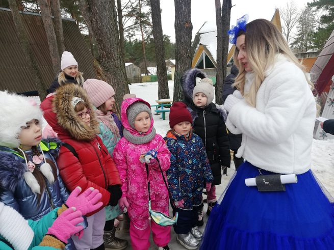 На территории оздоровительного лагеря «Берёзка» в деревне Белогруда нас ожидала развлекательную программа «Приключения Алисы в Новогоднем Королевстве». Ребятам очень понравилась незабываемая встреча со сказочными героями и, конечно же, Дедом Морозом и Снегурочкой, благодаря которым мы смогли окунуться в атмосферу волшебства. Чтобы встретиться с Дедом Морозом нам пришлось пройти испытания – интерактивные игры с песнями и танцами подарили всем веселое новогоднее настроение. Алиса, Шляпник, Чеширский Кот помогали нам справляться с забавными заданиями, наградой стал новогодний хоровод под ёлочкой.