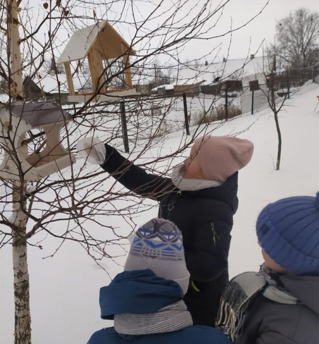 Всем классом подкармливаем птиц и наблюдаем за ними.