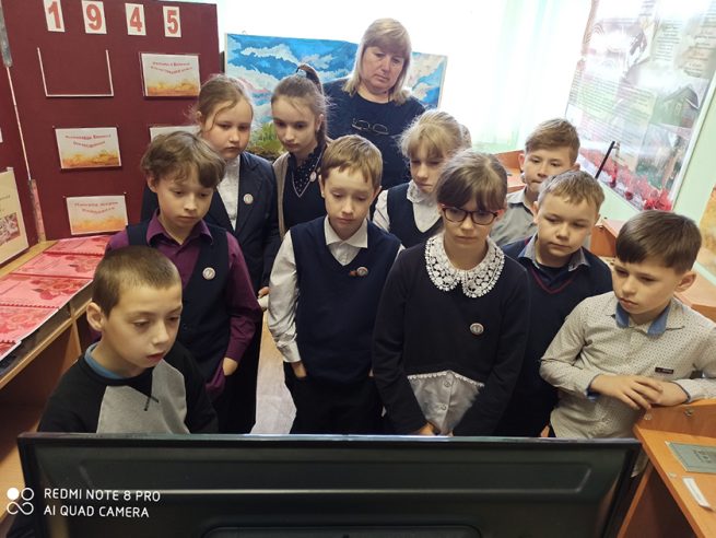 Для ребят прошло интерактивное путешествие по сайту «Навечно в памяти дворчан». Школьники просмотрели видеоролик-презентацию диорамы «Освобождение д. Дворец от немецко-фашистских захватчиков» и материалы лэп-бука «Великая Отечественная война».