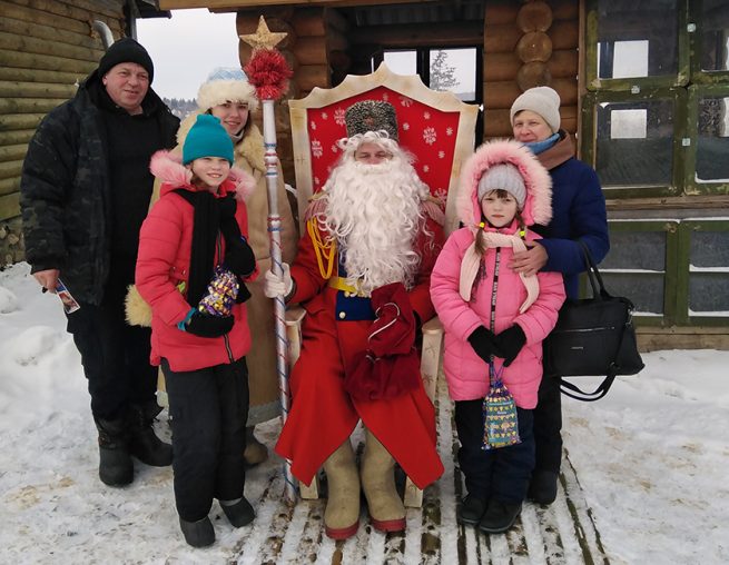 Здравствуйте, уважаемая редакция газеты «Зорька». Пишут вам сестрички – Ольга и Анастасия Белокурские. Очень хотим поздравить папу с праздником. Но он не любит фотографироваться. Поэтому фото будет старое. В прошлом году ездили в резиденцию Деда Мороза в Минск и на линию Сталина, общее фото сделали с Дедом Морозом и Снегурочкой.