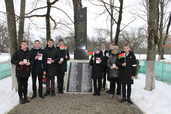 Урачыстая цырымонія прайшла ля помніка загінуўшым у гады Вялікай Айчыннай вайны аднавяскоўцам, дзе, па добрай школьнай традыцыі, штогод папаўняюцца рады членаў БРПА і БРСМ. Хвіліна маўчання, ускладанне жывых кветак. Пранікнёныя словы дырэктара школы В. І. Кухарчык аб тым, якое шчасце жыць без вайны, пад мірным небам, аб тым, што сёння наш святы абавязак – сумленна вучыцца і працаваць. Затым – цырымонія развітання з піянерскім гальштукам, з насычаным добрымі і цікавымі справамі піянерскім жыццём. На прызыў аддалі ў апошні раз піянерскі салют: «Заўжды гатовы!»