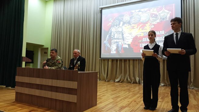 В средней школе № 3 г. Островца прошла диалоговая площадка «Время выбрало нас», где перед ребятами выступил воин-интернационалист Вацлав Андреевич Козловский и заместитель командира в/ч 7434 по идеологической работе полковник Михаил Васильевич Холщевников.