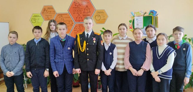 С профориентационной консультационно-разъяснительной информацией перед семиклассниками Дворецкой школы выступил её бывший учащийся Андрей Губко, ныне учащийся Гродненского кадетского училища.