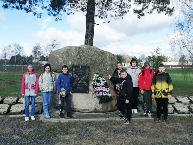 Шестой школьный день — это шанс пополнить копилку знаний и укрепить своё здоровье! Поэтому учащиеся 5 «А» и 5 «В» классов средней школы №2 имени Н.П.Массонова г.Свислочь вместе с классными руководителями в рамках информационно-познавательного марафона «Навечно в памяти» отправились в пешеходную прогулку по памятным местам родного города, посвящённым военным событиям прошлого столетия. Ребята посетили мемориальный комплекс «Асілак», памятник жертвам Первой мировой войны, мемориальный знак в честь Героя Советского Союза Н.П.Массонова. Пополнить копилку знаний участников помогли достоверные комментарии учителя истории В.В.Михальчика.