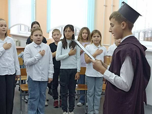 Самым торжественным моментом стало посвящение в пятиклассники, которое провел Магистр знаний. Ребята дали клятву достойно нести звание «Пятиклассник» до конца учебного года.