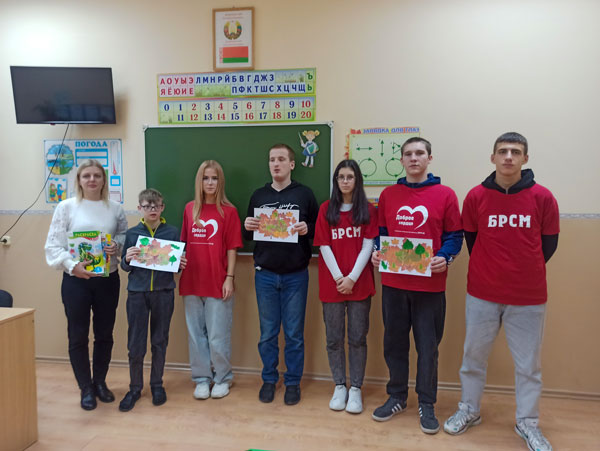 В гости к обучающимся пришли волонтёры отряда «Доброе сердце» Берестовицкого государственныного колледжа во главе с первым секретарём РК ОО «БРСМ» Еленой Николаевной Карнилович. Для ребят была организована творческая мастерская «Осенний букет».